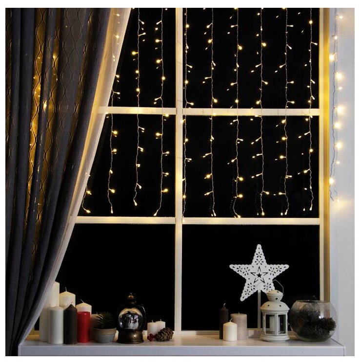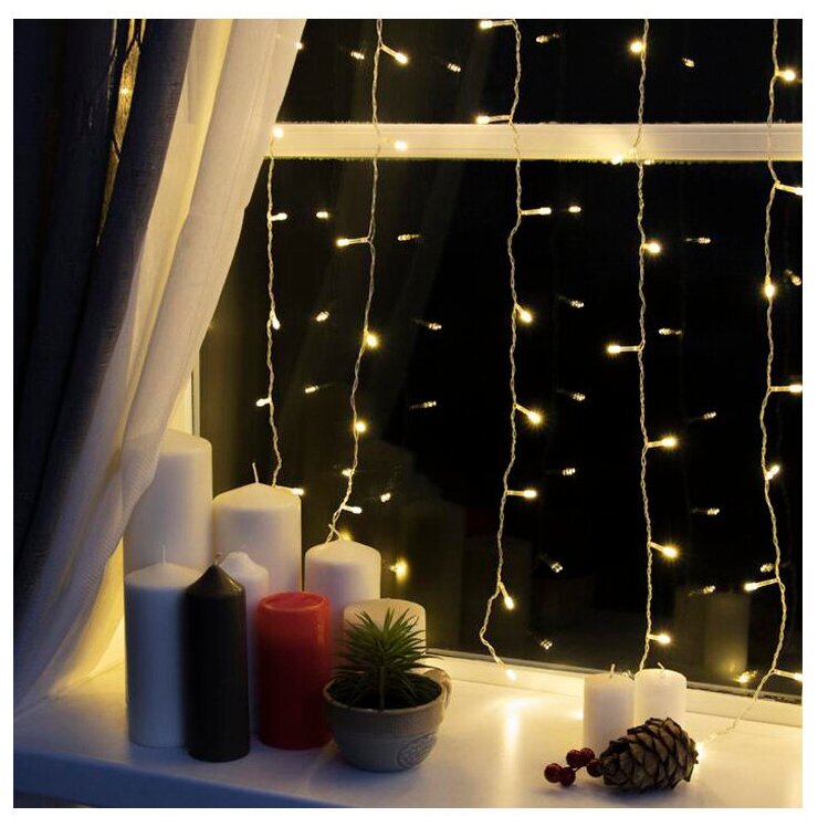 Отзывы на Гирлянда «Занавес» 1.5 × 1 м, IP20, прозрачная нить, 180 LED, свечение белое, 8 режимов, 220 В