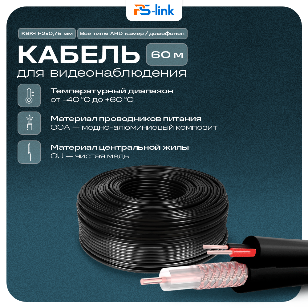 Отзывы на Кабель КВК RG-59 + 2 x 0.75 кв. мм. 60м. Ps-Link KVK-CCA-2075-60