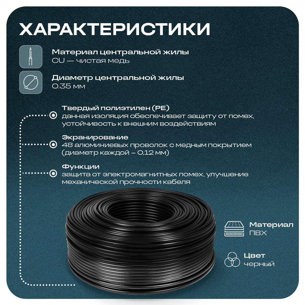 Кабель КВК RG-59 + 2 x 0.75 кв. мм. 90м. Ps-Link KVK-CCA-2075-90 информация: