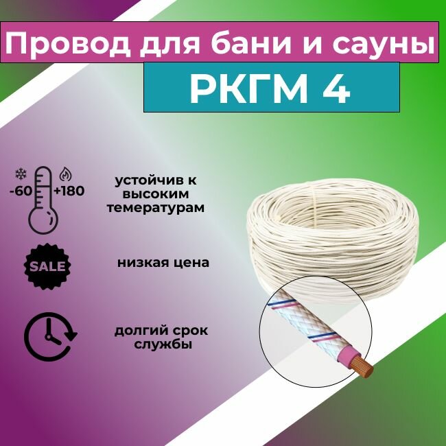 Провод для сауны и бани термостойкий РКГМ 4 Рыбинсккабель ГОСТ - 10 м. информация: