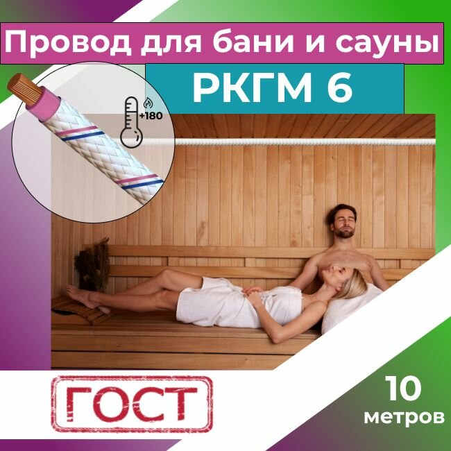 10 цен на Провод для сауны и бани термостойкий РКГМ 6 Рыбинсккабель ГОСТ - 10 м.