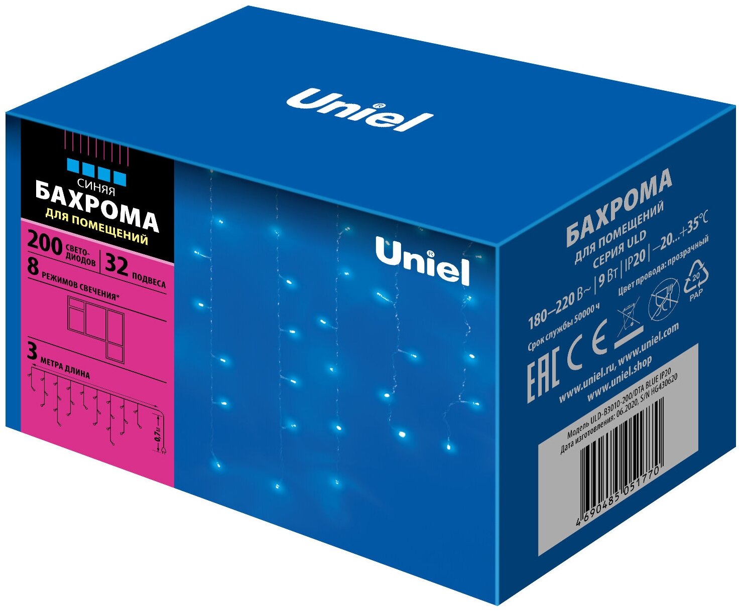 Светодиодная бахрома Uniel (07950) Uld-b3010-200/dta Blue . информация: