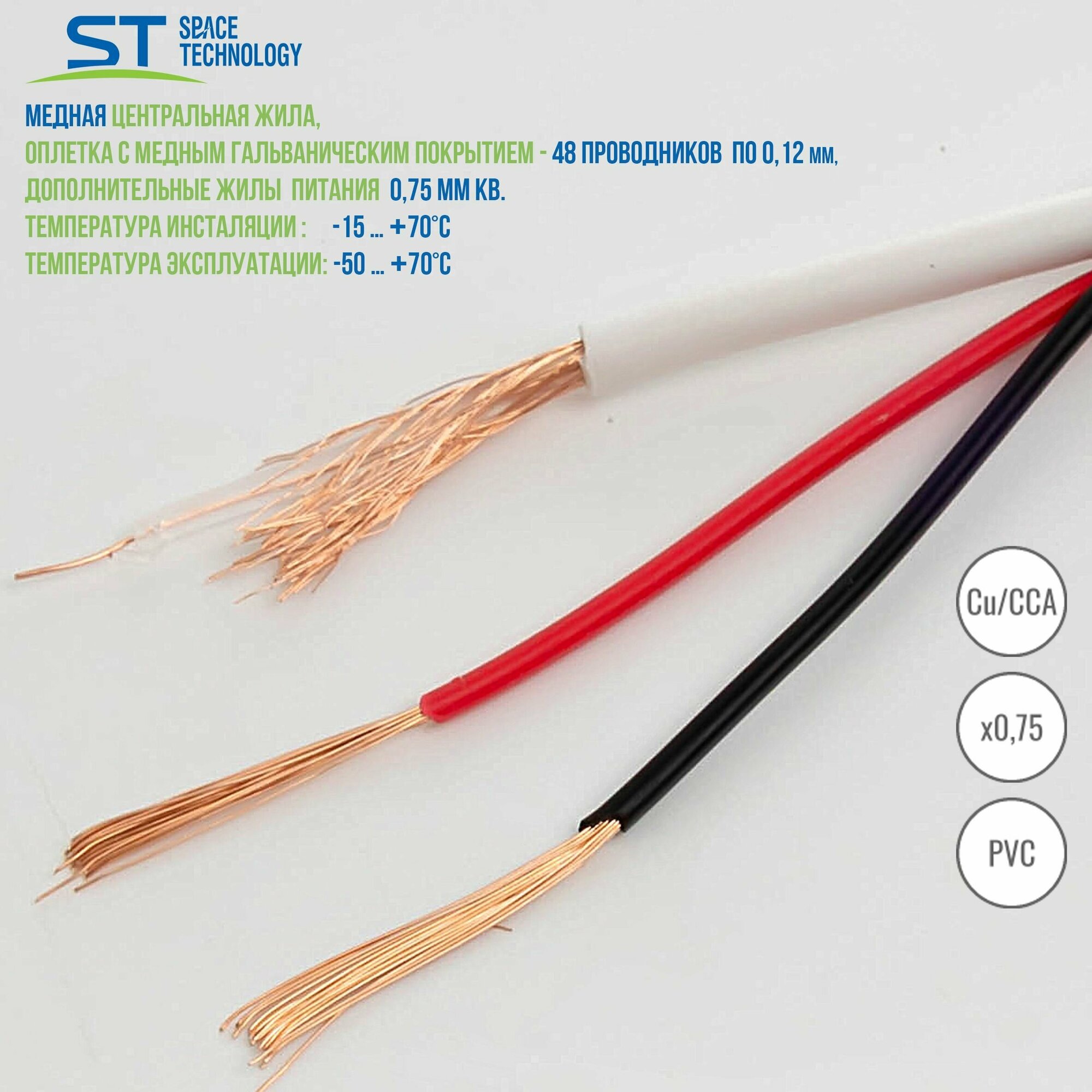 Кабель комбинированный для видеонаблюдения и домофонии КВК-В 2Х0,75 (РК 75+2х0,75 (48) PVC ST) белый для внутренней прокладки (помещение) (бухта 25м) информация: