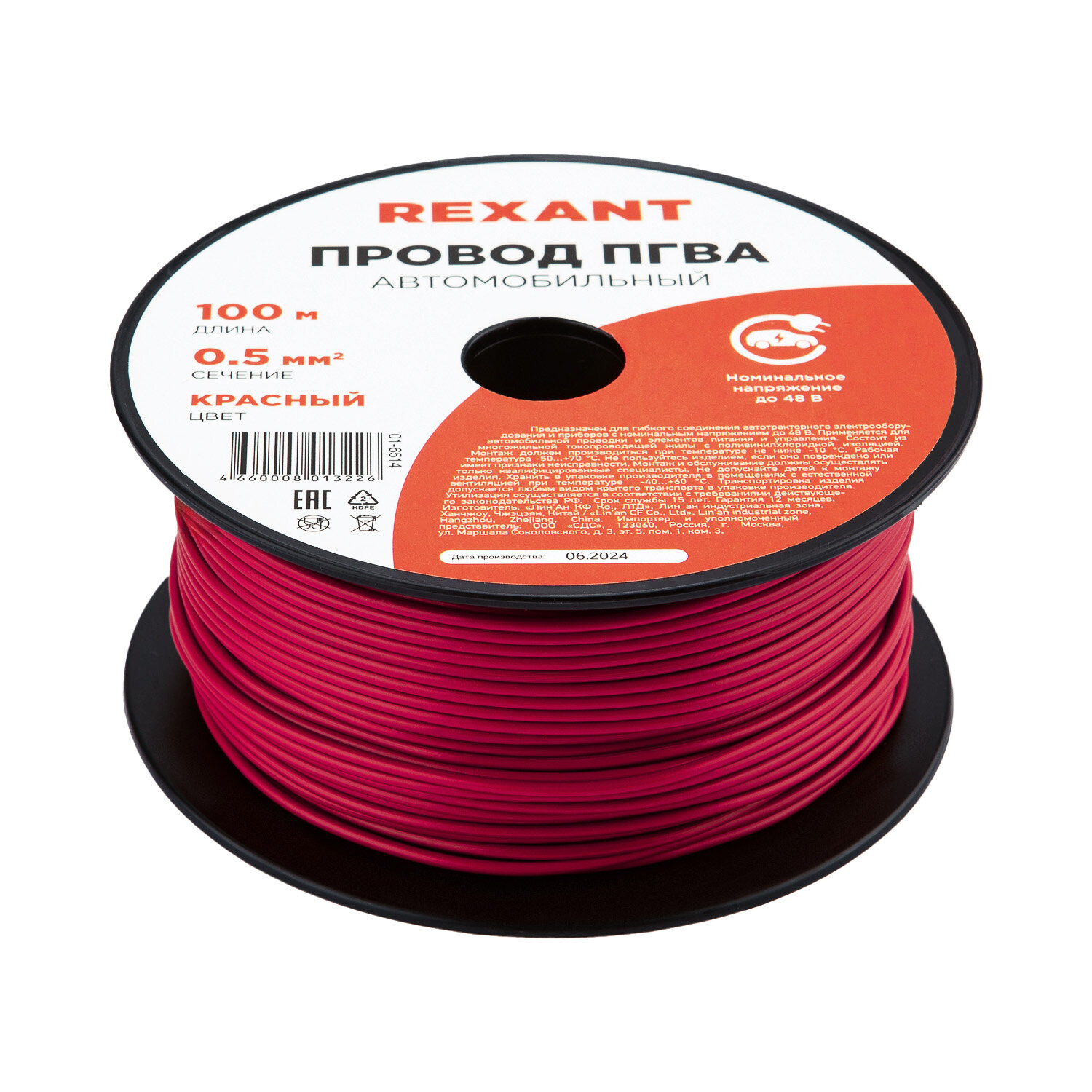 10 цен на Провод автомобильный красный REXANT сечение кабеля 0,5 мм, длина 100 метров / акустический кабель / электропроводка