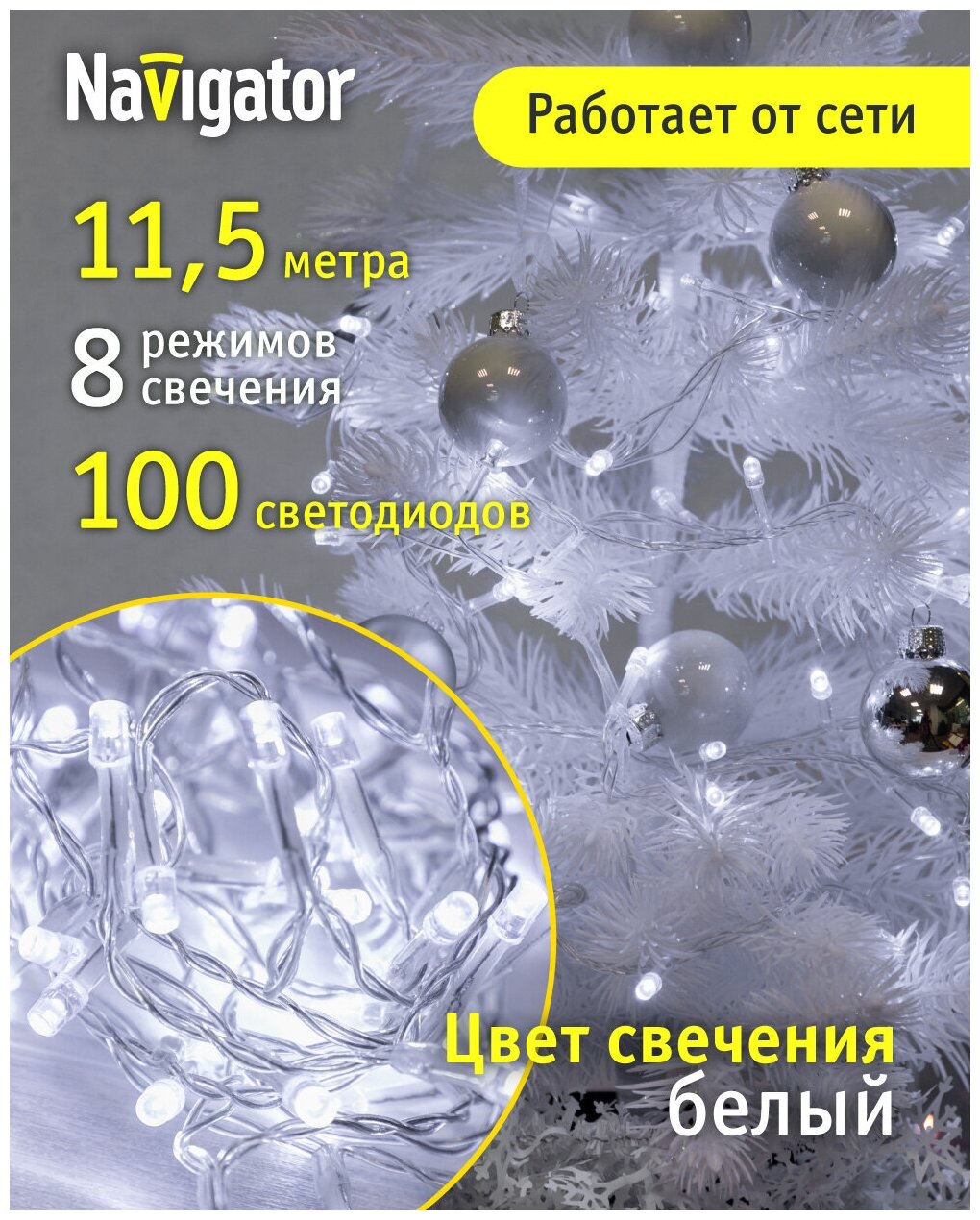 Гирлянда NAVIGATOR 6,5м 100LED холодный белый зеленый провод / электрическая, новогодняя 1 694 ₽