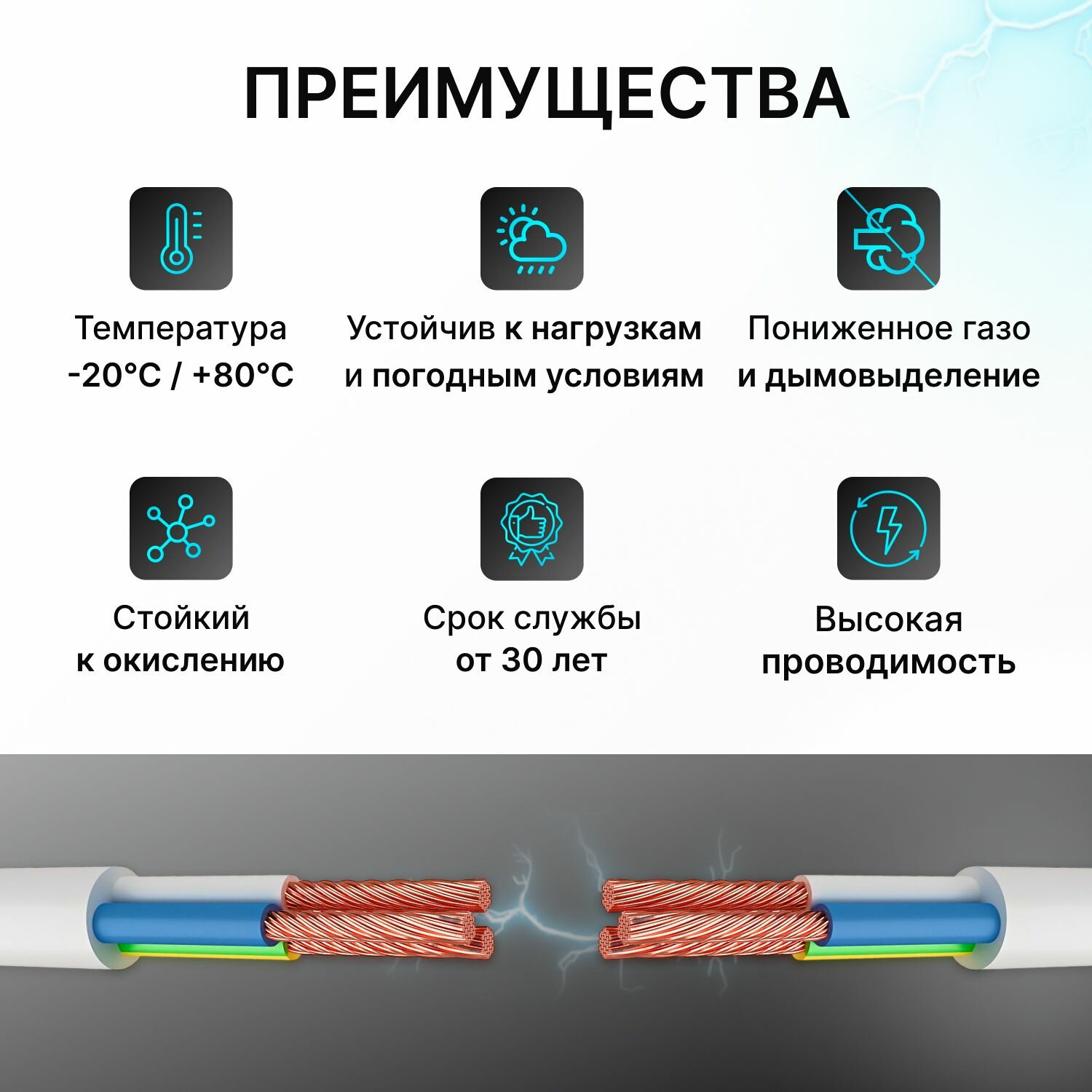 Кабель электрический рэмкабель ПВС 3х2.5 белый ГОСТ круглый 20 м 4 949 ₽