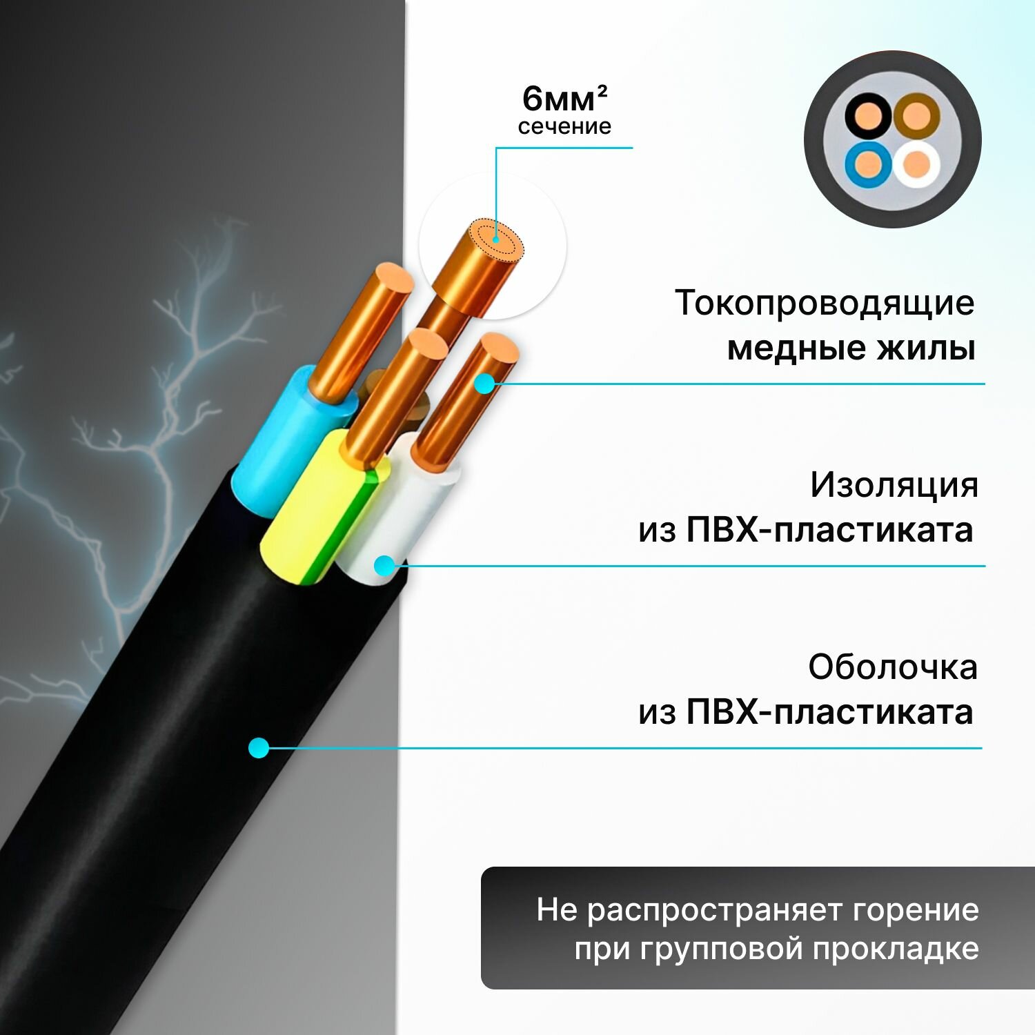 Силовой кабель рэмкабель ВВГнг(A)-LS 4x6 ГОСТ ок круглый 5 м информация: