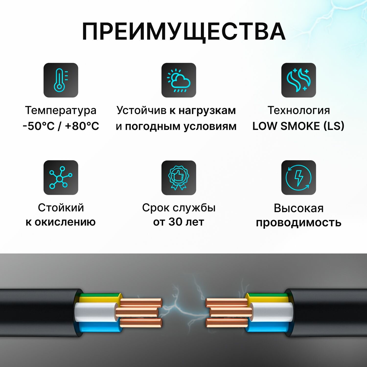 Силовой кабель рэмкабель ВВГнг(A)-LS 5x6, ГОСТ ок, круглый, 40 м 32 602 ₽