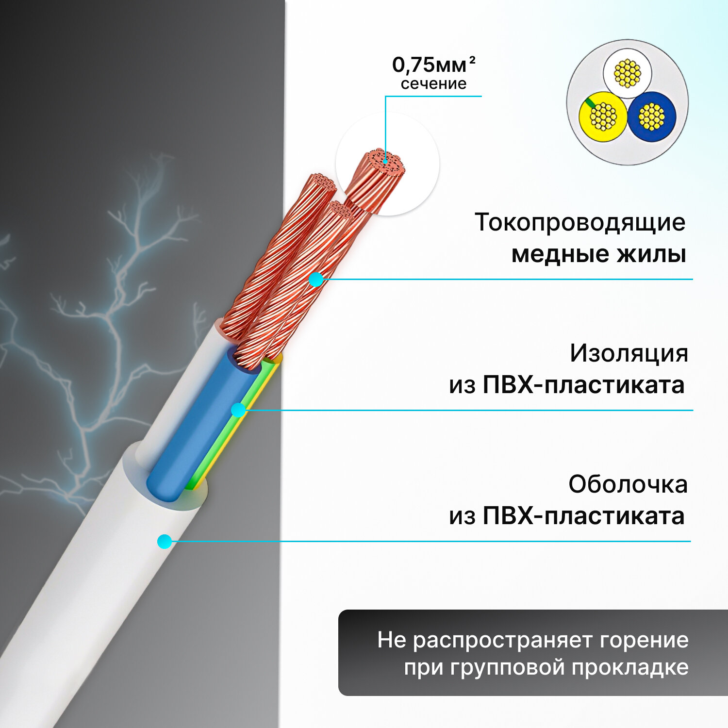 Кабель электрический рэмкабель ПВС 3x0,75 белый ГОСТ круглый 5 м 708 ₽