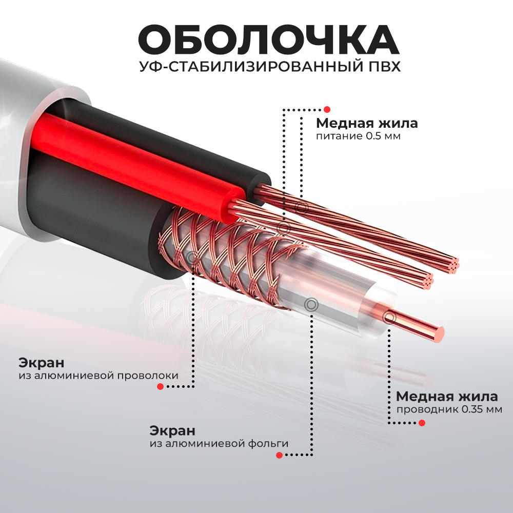 Отзывы на Кабель КВК для видеонаблюдения RG-59 + 2 x 0,5 кв. мм бухта 60 метров PS-link CB60