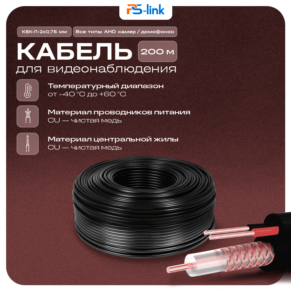 Отзывы на Кабель КВК RG-59 + 2 x 0.75 кв. мм. 200м. Ps-Link KVK-CU-2075-200