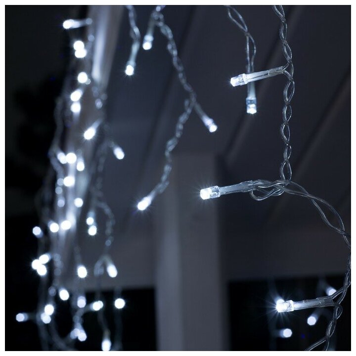 Гирлянда «Бахрома» 3 × 0.6 м, IP44, УМС, белая нить, 160 LED, свечение белое, 220 В (арт. 1080174)