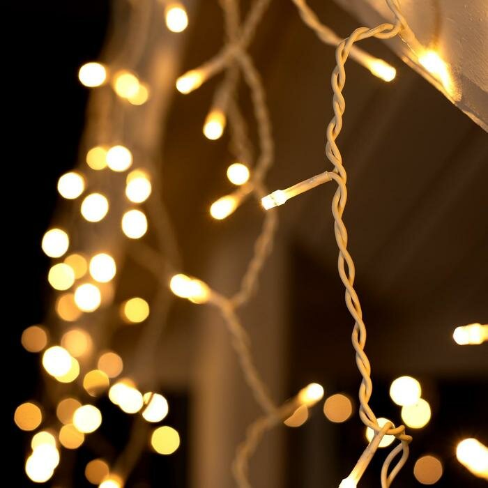Гирлянда «Бахрома» 3 × 0.6 м, IP44, УМС, прозрачная нить, 160 LED, свечение жёлтое, мерцание белым, 220 В