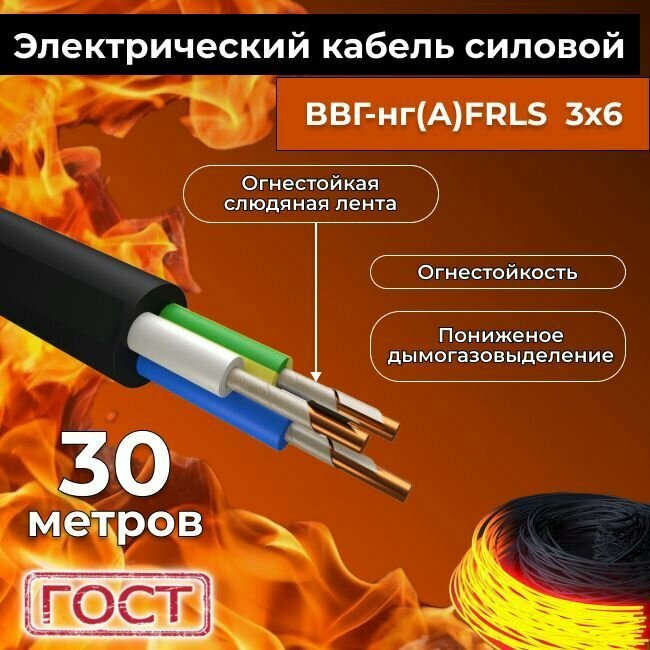 Провод электрический огнестойкий/кабель ГОСТ 31996-2012 ВВГнг(А)-FRLS 3х6 - 30 м. информация: