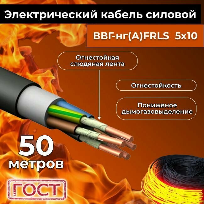 10 цен на Провод электрический огнестойкий/кабель ГОСТ 31996-2012 ВВГнг(А)-FRLS 5х10 - 50 м.