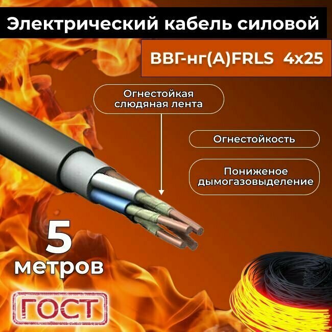 Провод электрический огнестойкий/кабель ГОСТ 31996-2012 ВВГнг(А)-FRLS 4х25 - 5 м. информация: