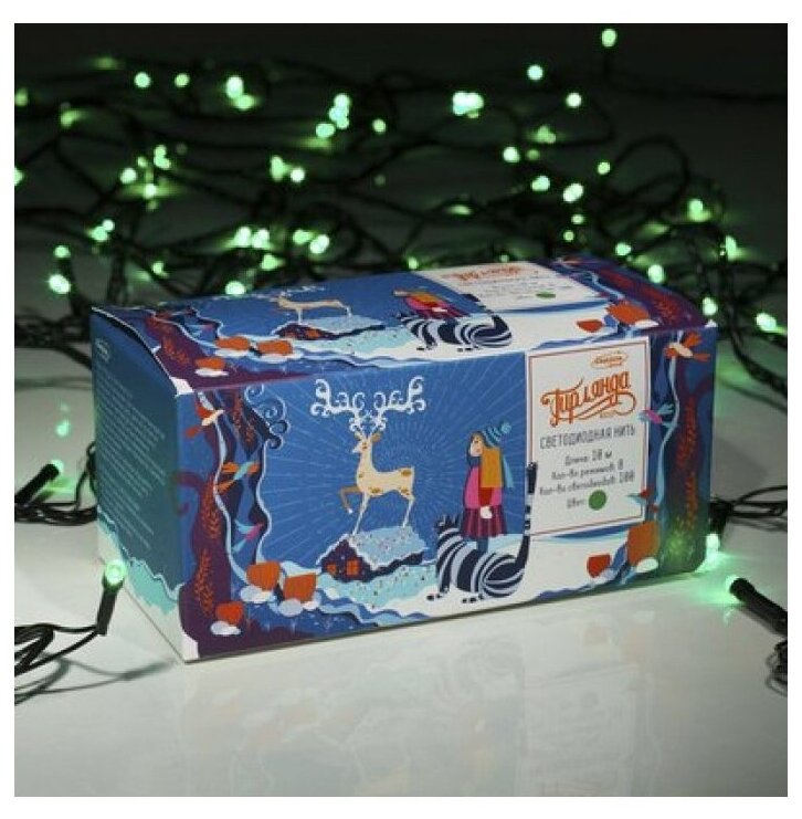 10 цен на Электрогирлянда "Нить" 10 м , IP20, тёмная нить, 100 LED, свечение зелёное, 8 режимов, 220 В