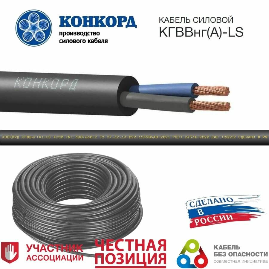 Кабель гибкий кгввнг(А)-LS 4х6 (N) 380/660-2 Конкорд 485 (25 Метров) 15 189 ₽