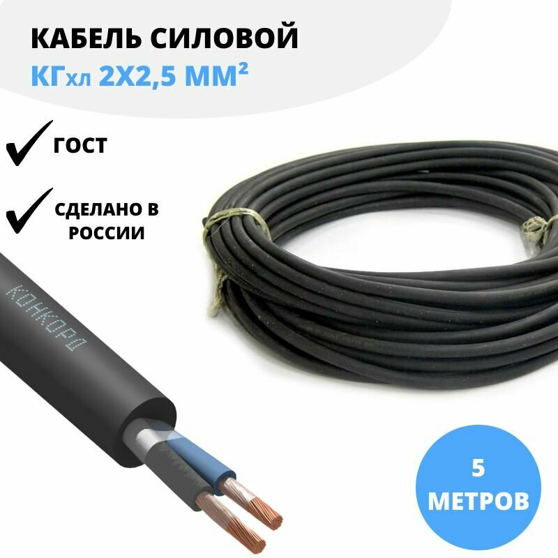 10 цен на Силовой кабель Конкорд КГхл 2х2,5 мм, 5 м ГОСТ для нестационарной прокладки (гибкий), холодостойкий