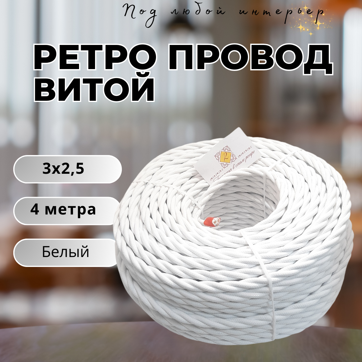 10 цен на Витой ретро провод BIRONI Бирони 3х2,5 матовый, 4 м/уп, B1-435-71-4 цвет: БЕЛЫЙ