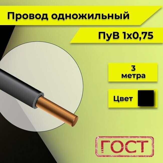 Провод однопроволочный ПУВ ПВ1, с медной жилой, 450В, 1х0.75 черный ГОСТ 3м информация: