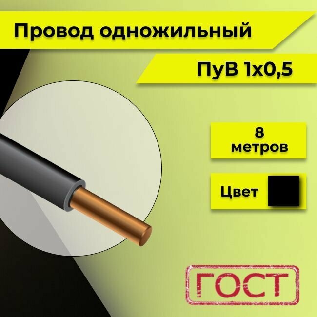 Провод однопроволочный ПУВ ПВ1, с медной жилой, 450В, 1х0.5 черный ГОСТ 8м информация: