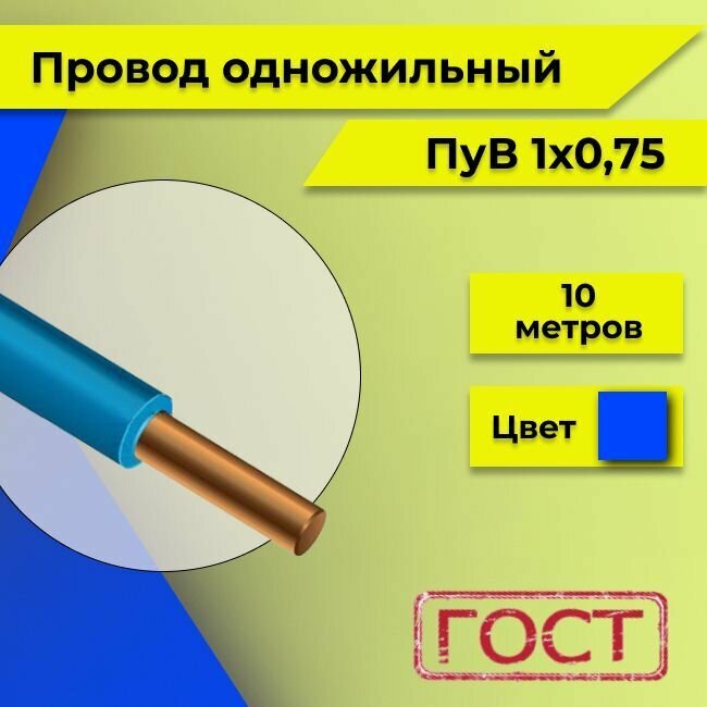 10 цен на Провод однопроволочный ПУВ ПВ1, 450В, 1х0.75 синий/голубой ГОСТ 10м
