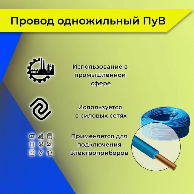 Провод однопроволочный ПУВ ПВ1, 450В, 1х6 синий/голубой ГОСТ 6м 1 421 ₽