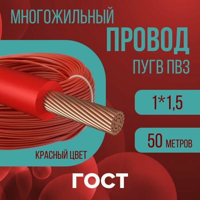 10 цен на Провод электрический многожильный ПУГВ ПВ3, 450В, 1х1,5 красный 50м