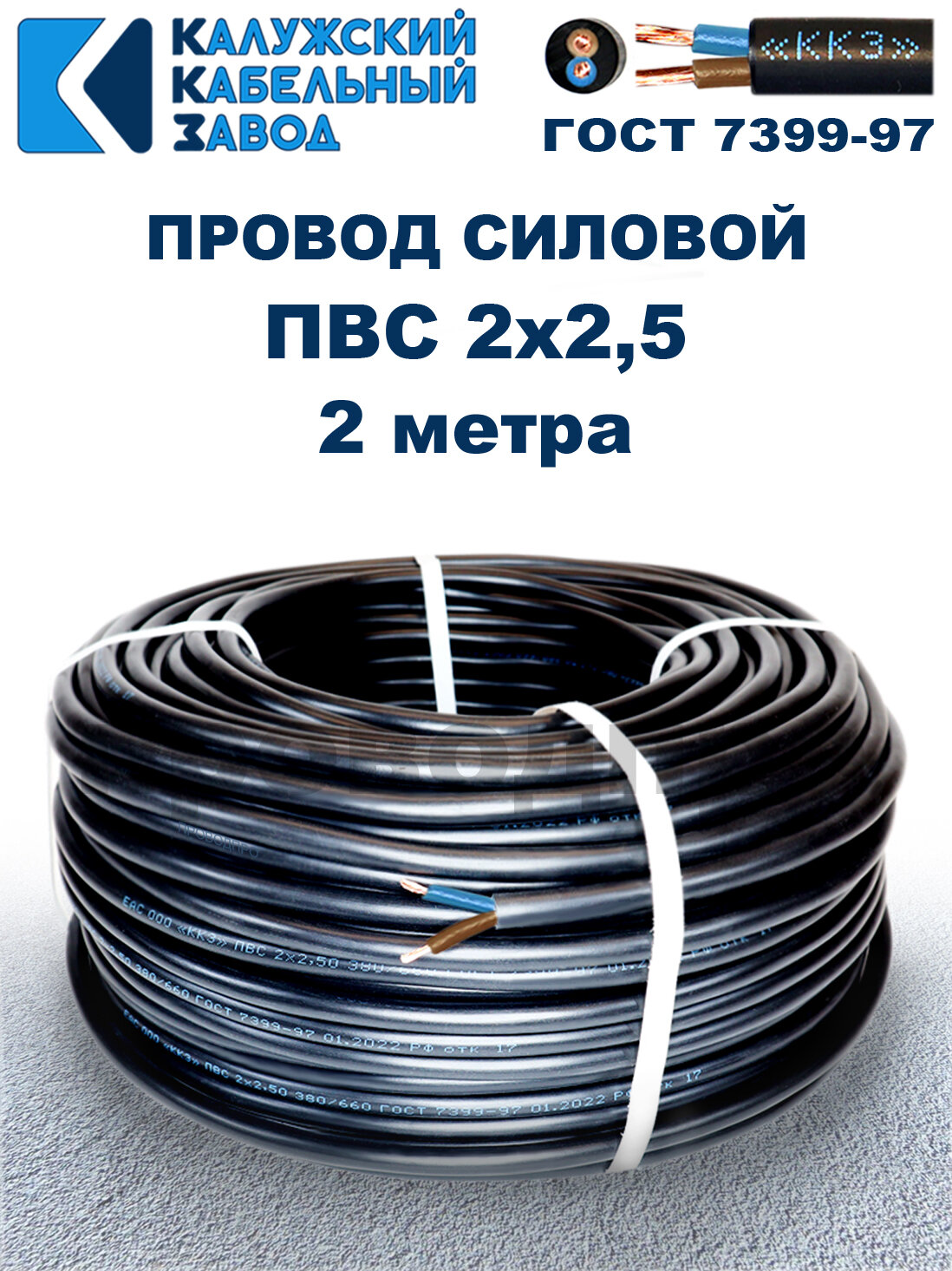 10 цен на Провод ПВС 2х2,5 ГОСТ, 2 метра. Чёрный. Калужский кабельный завод