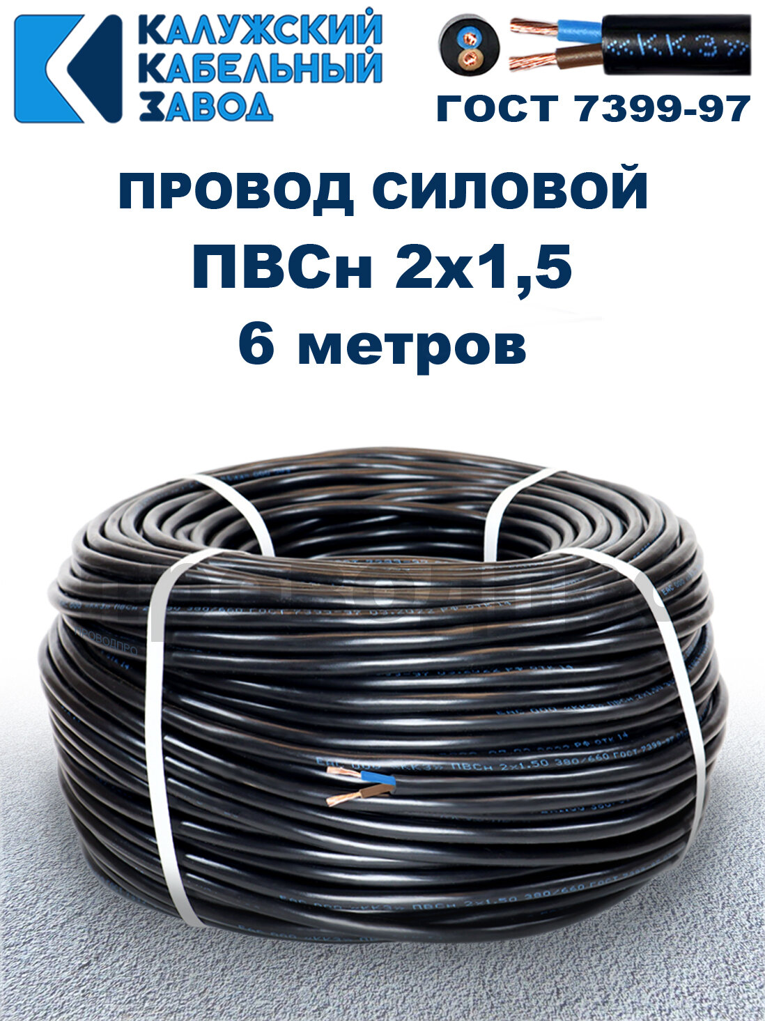 10 цен на Провод ПВС 2х1,5 ГОСТ, 6 метров. Чёрный. Калужский кабельный завод