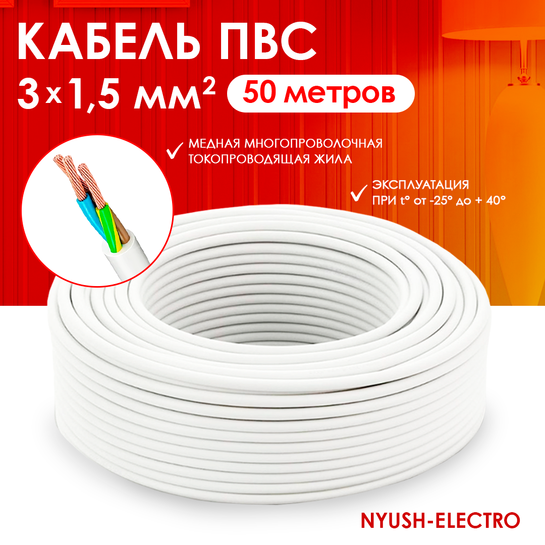 10 цен на Кабель ПВС 3х1.5 мм2, провод пвс, силовой медный.