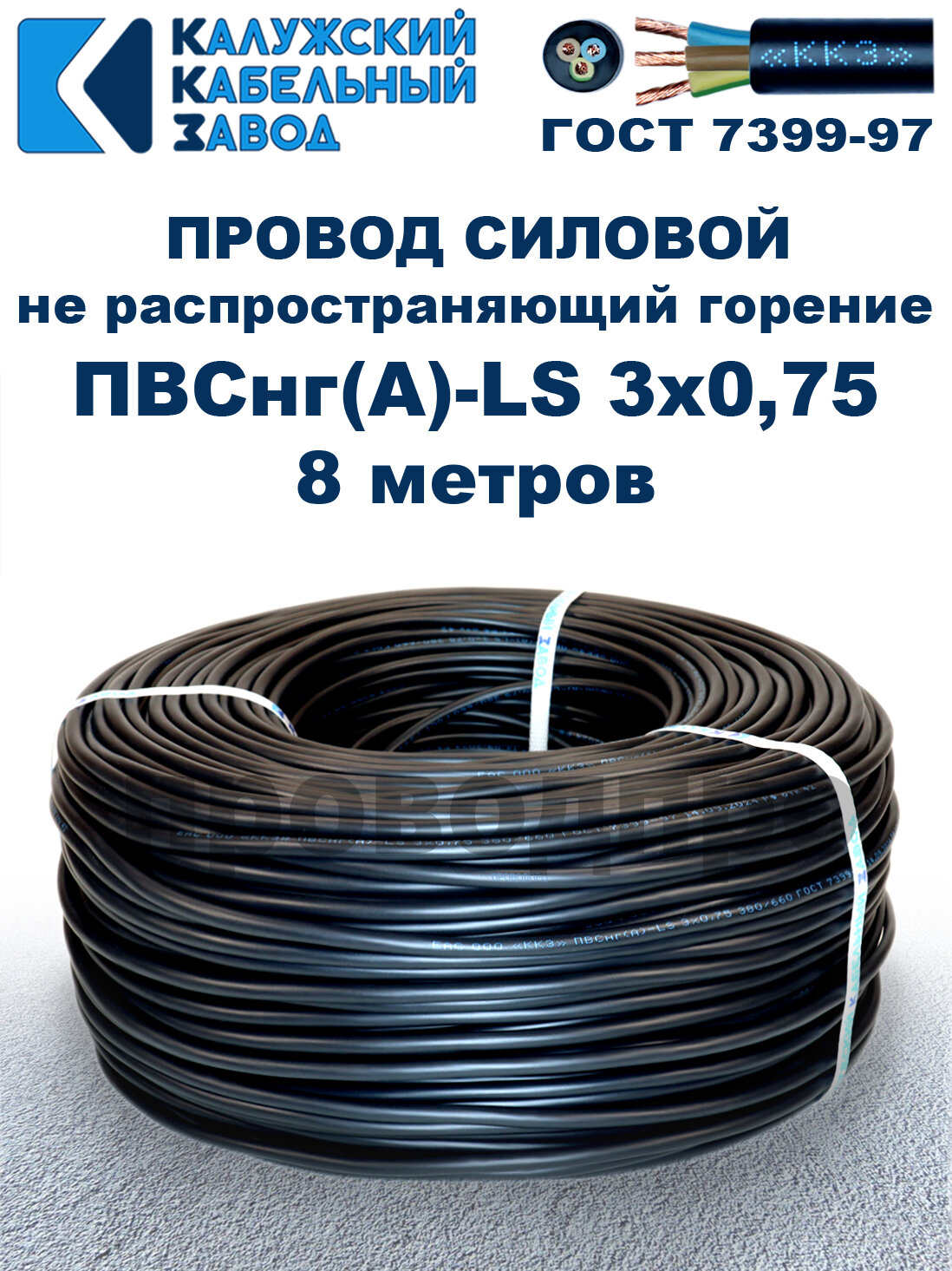 Провод ПВСнг(A)-LS 3х0,75, ГОСТ, 8 метров информация: