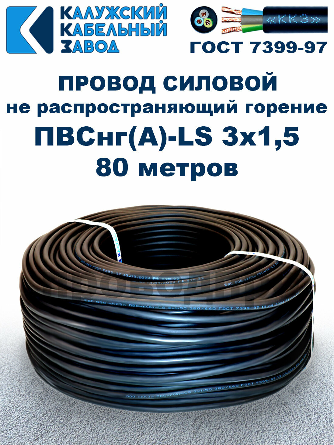 Провод ПВСнг(A)-LS 3х1,5, ГОСТ, 80 метров информация: