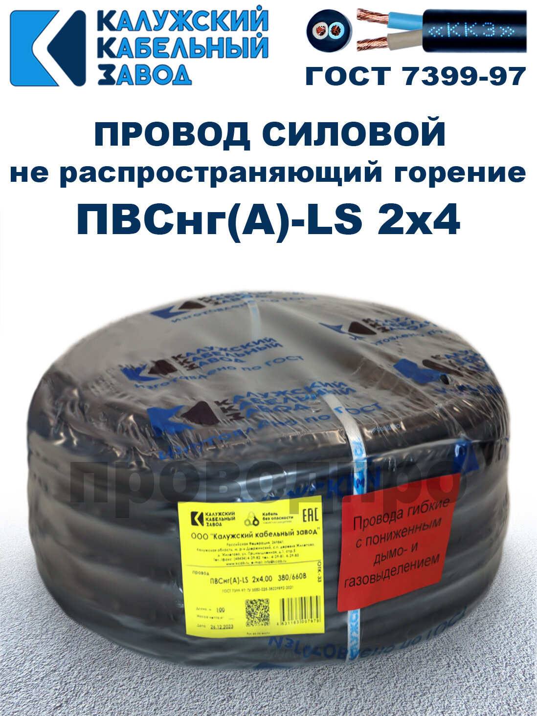 Провод ПВСнг(A)-LS 2х4,0, ГОСТ, 5 метров информация: