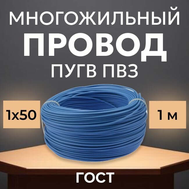 Провод электрический многожильный ПУГВ ПВ3, 750В, 1х50 синий 1м информация: