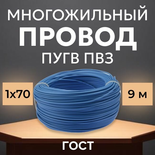Провод электрический многожильный ПУГВ ПВ3, 750В, 1х70 синий 9м информация: