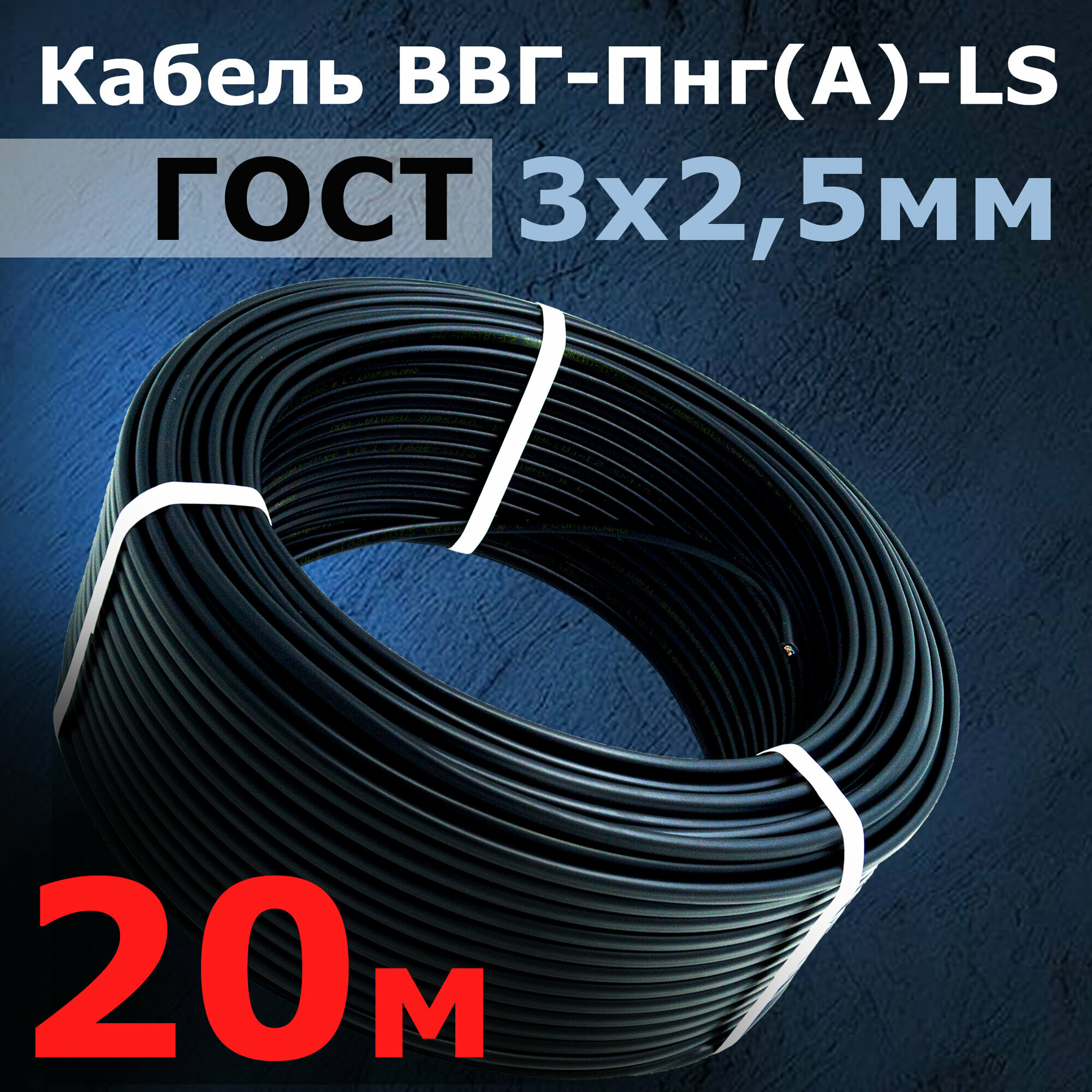 10 цен на Кабель ГОСТ 3*2,5мм2 (20 метров) электрический ВВГ-Пнг(А)-LS Трёхжильный силовой медный (Россия)