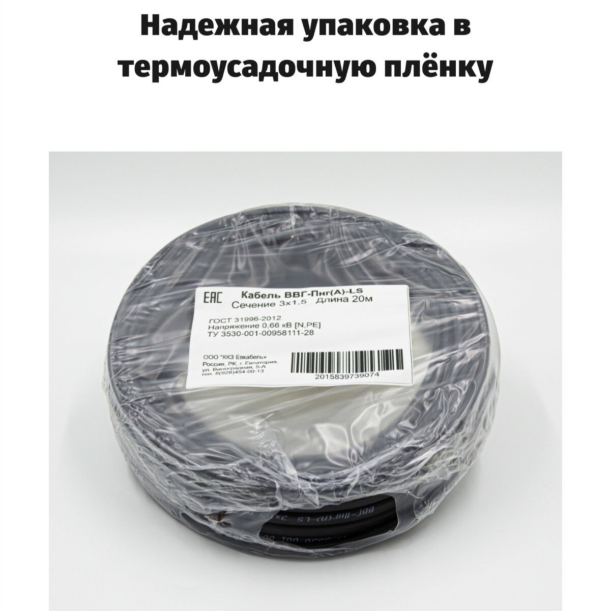 Кабель ГОСТ 3*1,5мм2 (20 метров) электрический ВВГ-Пнг(А)-LS Трёхжильный силовой медный (Россия) информация: