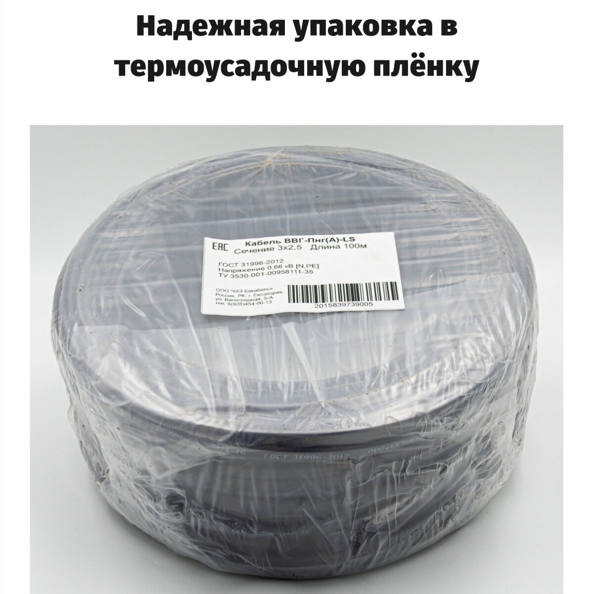 Кабель ГОСТ 3*2,5мм2 (100 метров) электрический ВВГ-Пнг(А)-LS Трёхжильный силовой медный (Россия) информация: