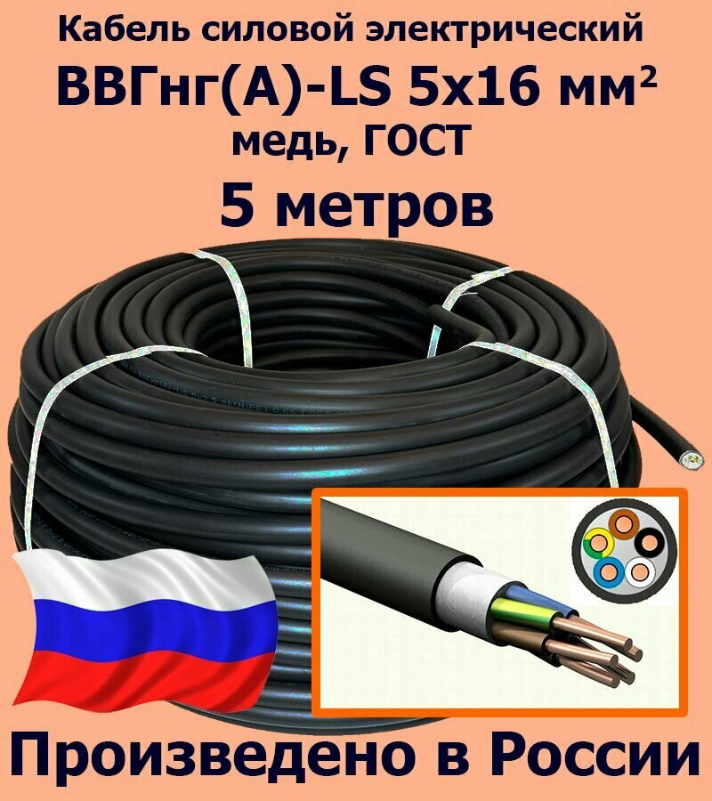 10 цен на Кабель силовой электрический ВВГнг(A)-LS 5х16 мм2, медь, ГОСТ, 5 метров