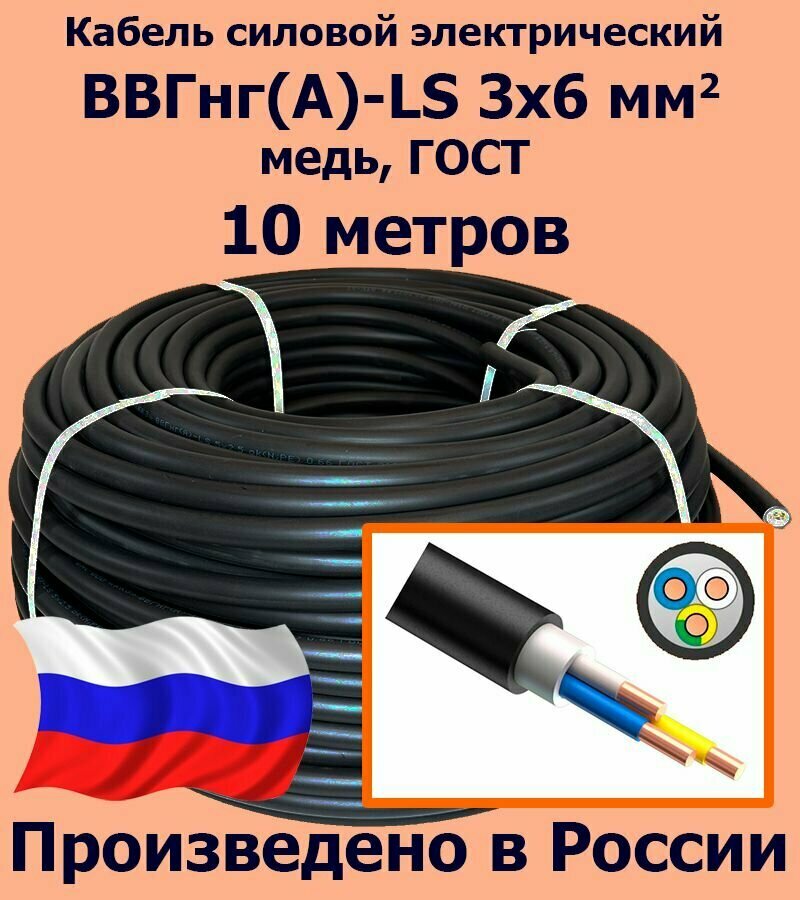 10 цен на Кабель силовой электрический ВВГнг(A)-LS 3х6 мм2, медь, ГОСТ, 10 метров