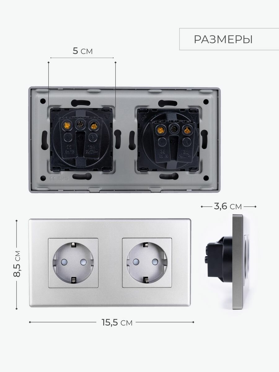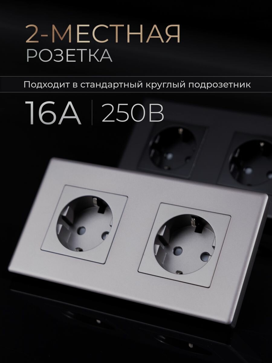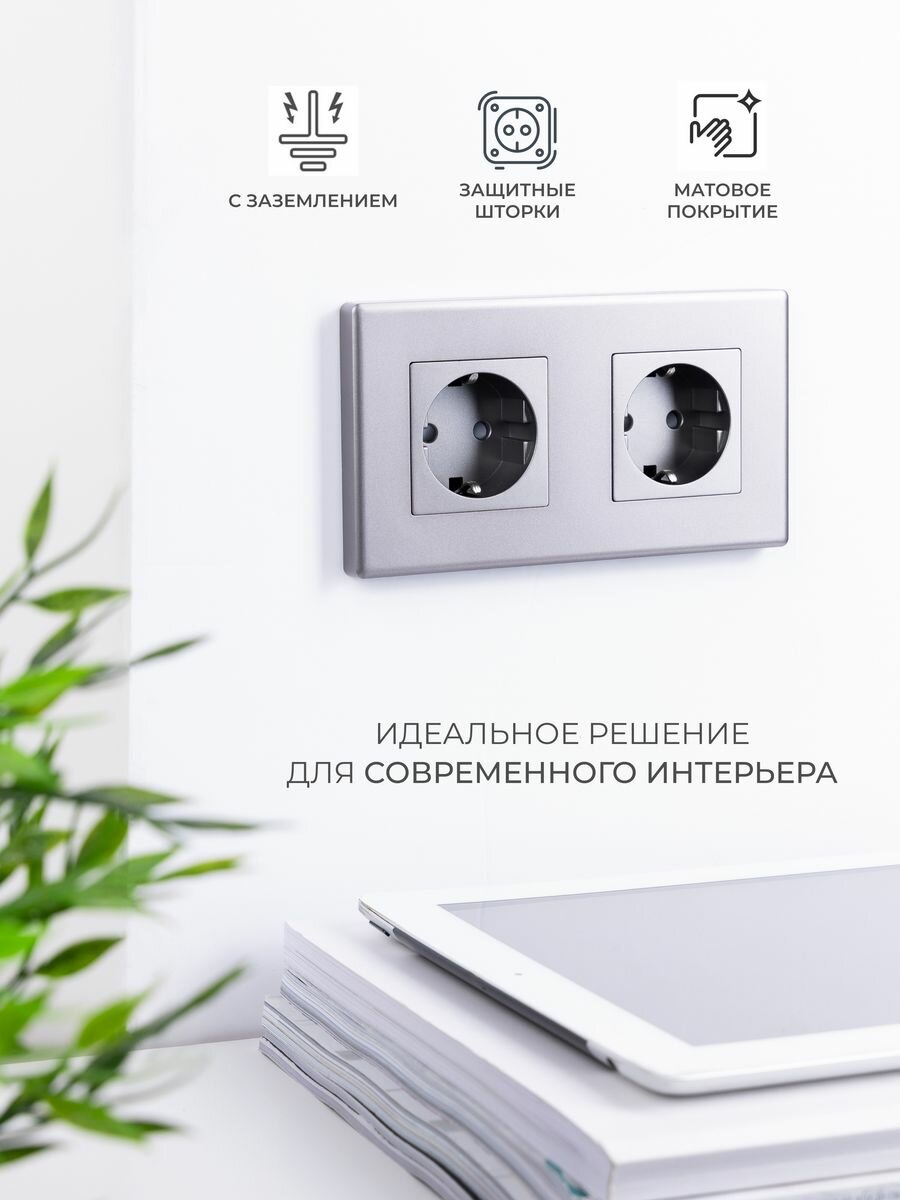 Двойная розетка серая с заземлением информация:
