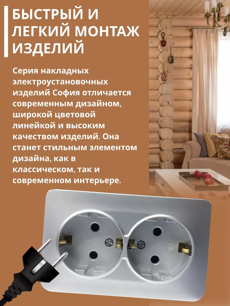 10 цен на Розетка накладная STEKKER София, 2 гнезда, с заземлением, IP20, серебро