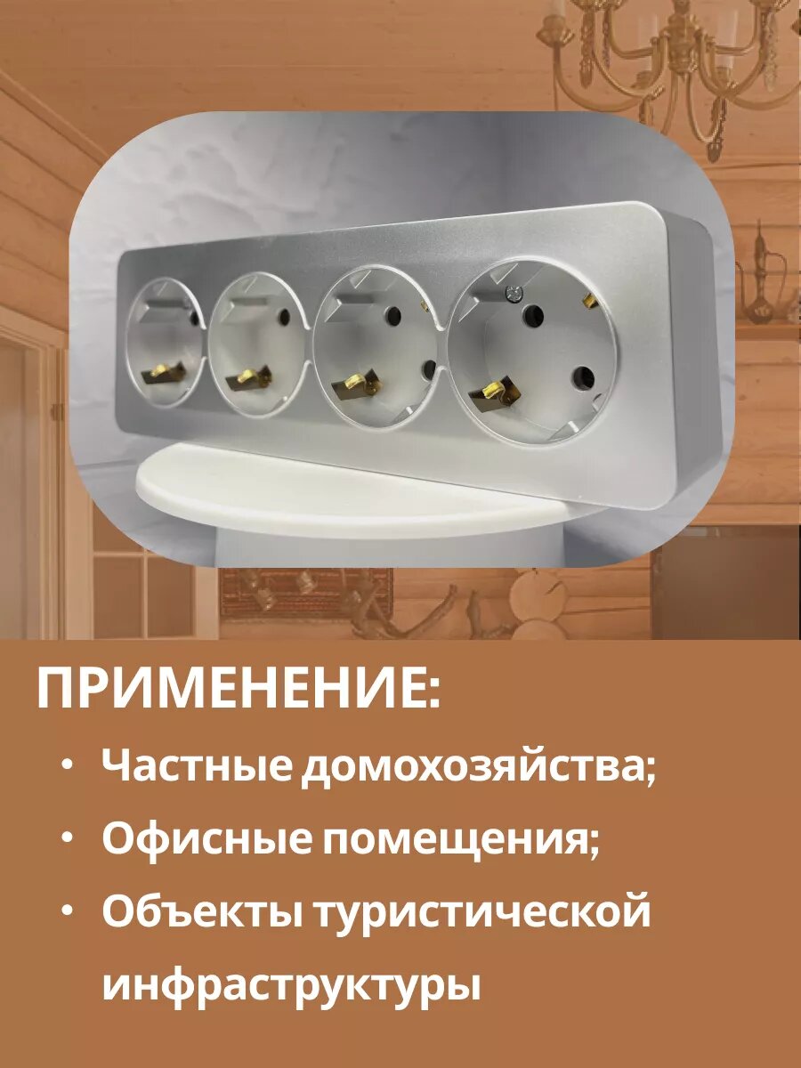 Розетка накладная STEKKER София, 4 гнезда, с заземлением, IP20, серебро информация: