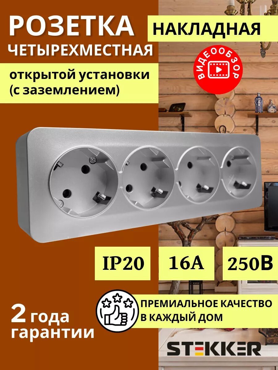 Отзывы на Розетка накладная STEKKER София, 4 гнезда, с заземлением, IP20, серебро