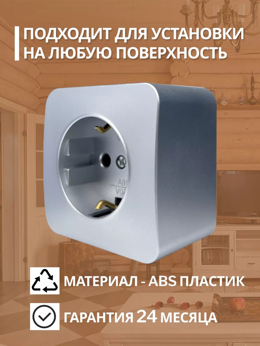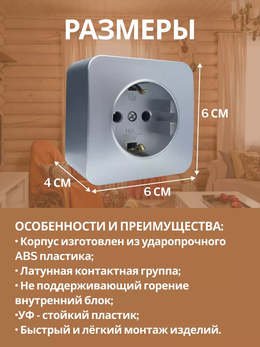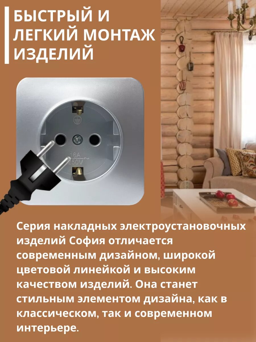 Розетка накладная STEKKER София, 1 гнездо, с заземлением, IP20, серебро информация: