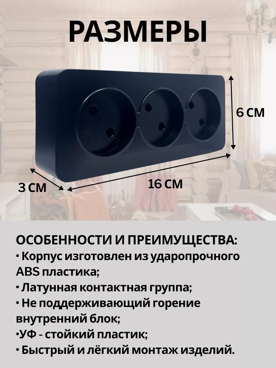 Розетка накладная STEKKER София, 3 гнезда, без заземления, IP20, черный информация: