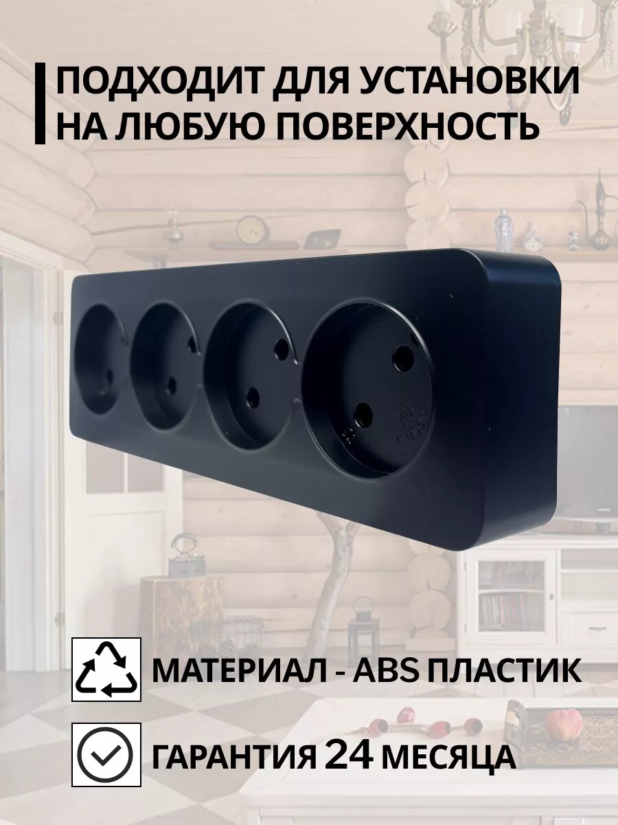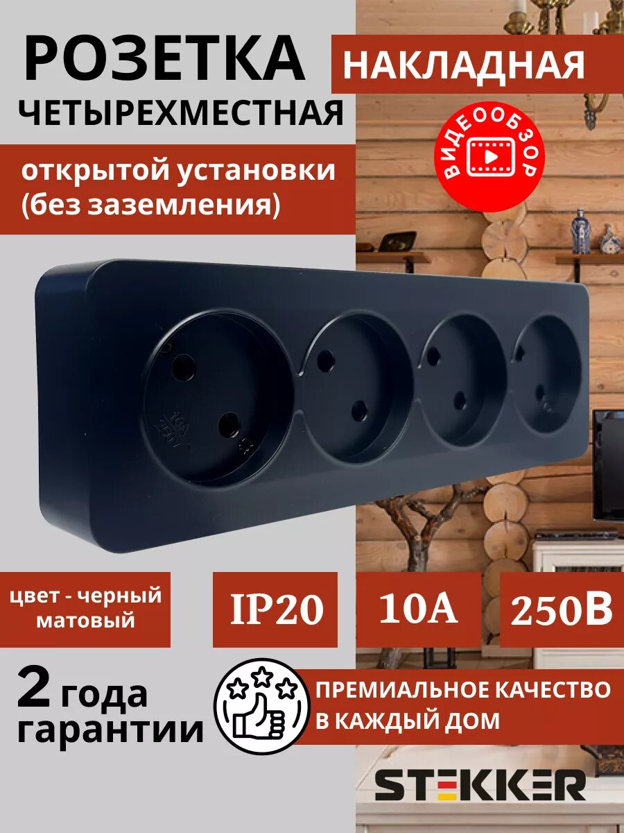 Отзывы на Розетка накладная STEKKER София, 4 гнезда, без заземления, IP20, черный