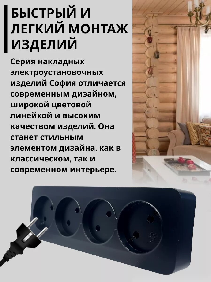 Розетка накладная STEKKER София, 4 гнезда, без заземления, IP20, черный информация: